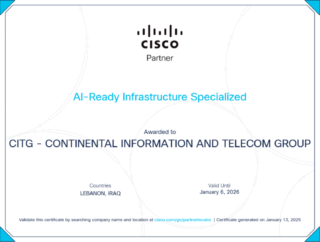 We are proud to announce that CITG – Continental Information and Telecom Group is officially recognized as Cisco AI-Ready Infrastructure Specialized.